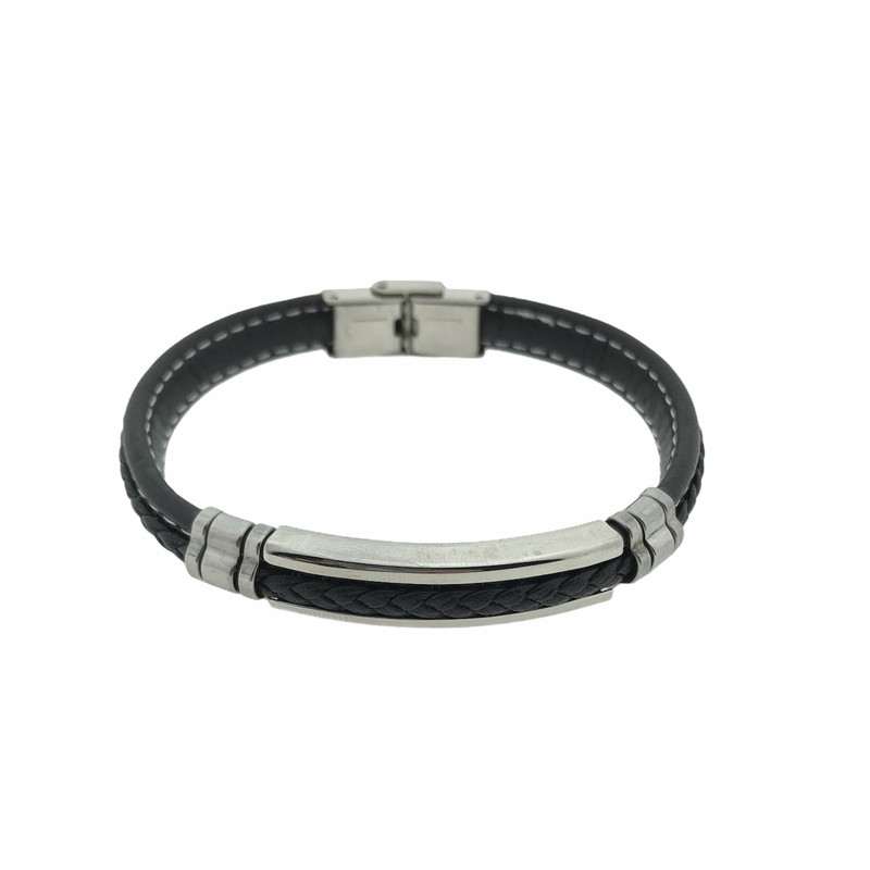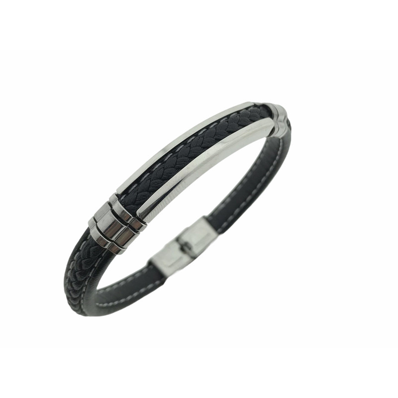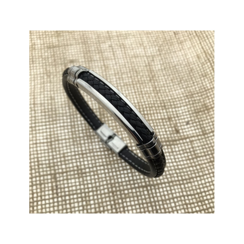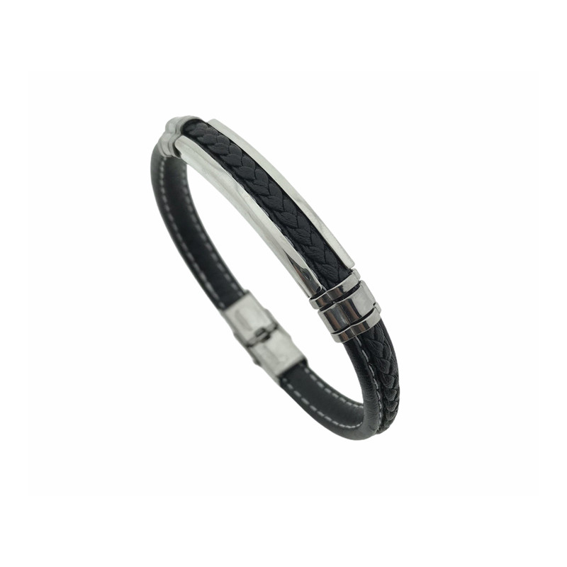 Pulsera Acero cuero negro
