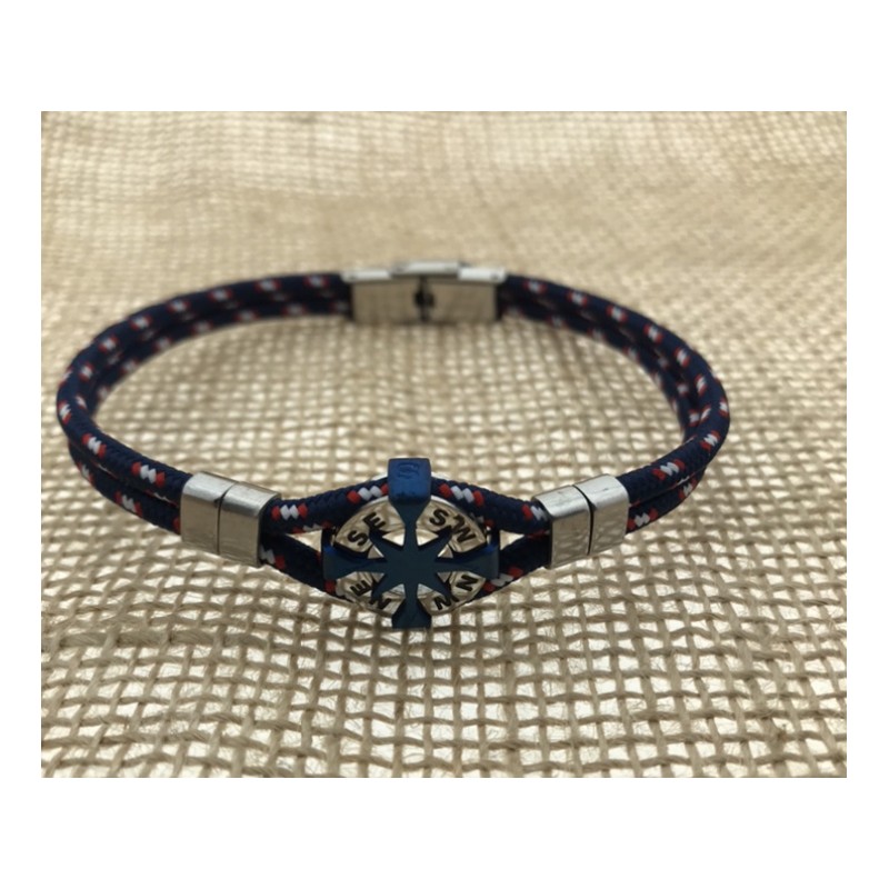 • Pulsera acero estrella de los vientos y cuerda azul.