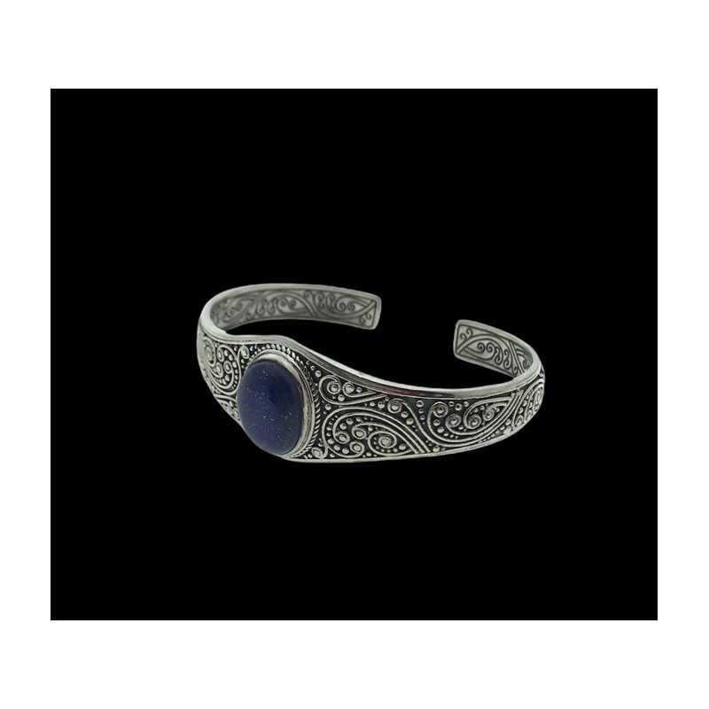 • Brazalete labrado de plata 1ªLey con Lapislazuli