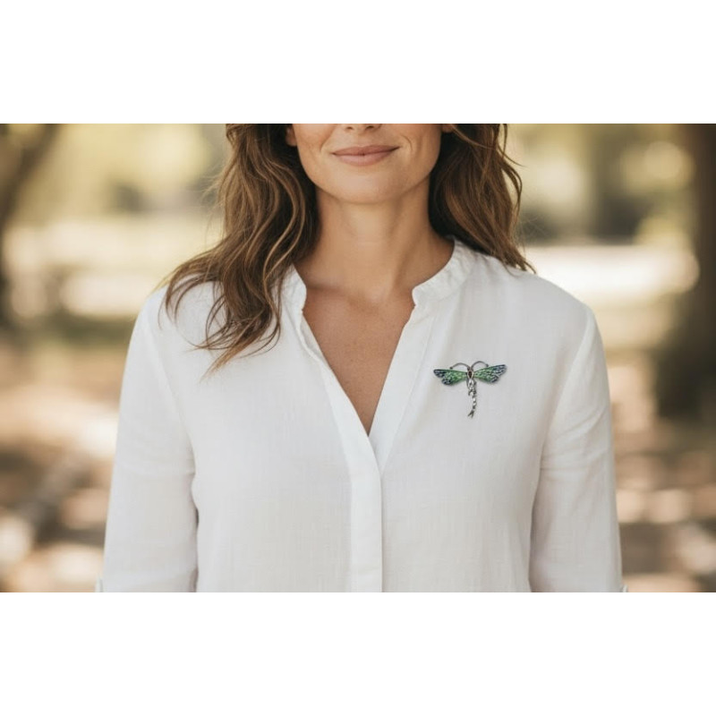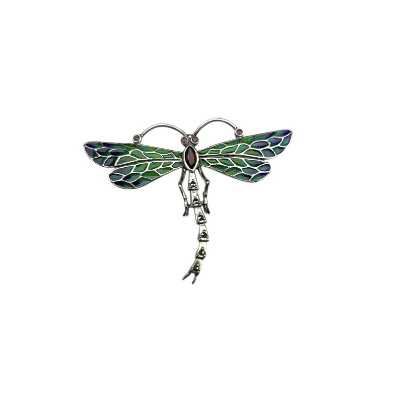 Libélula Plata 925 y marquesitas y esmalte en tonos azules y verdes.