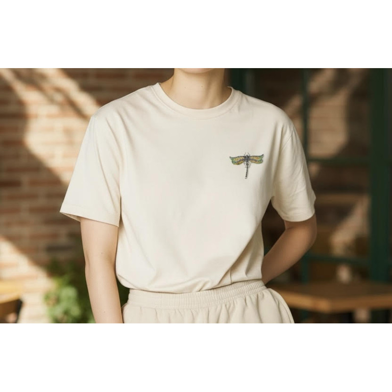 Dimensiones aproximadas de la libélula 56 mm x 15 mm las alas, y el cuerpo 42 mm x 10 mm.