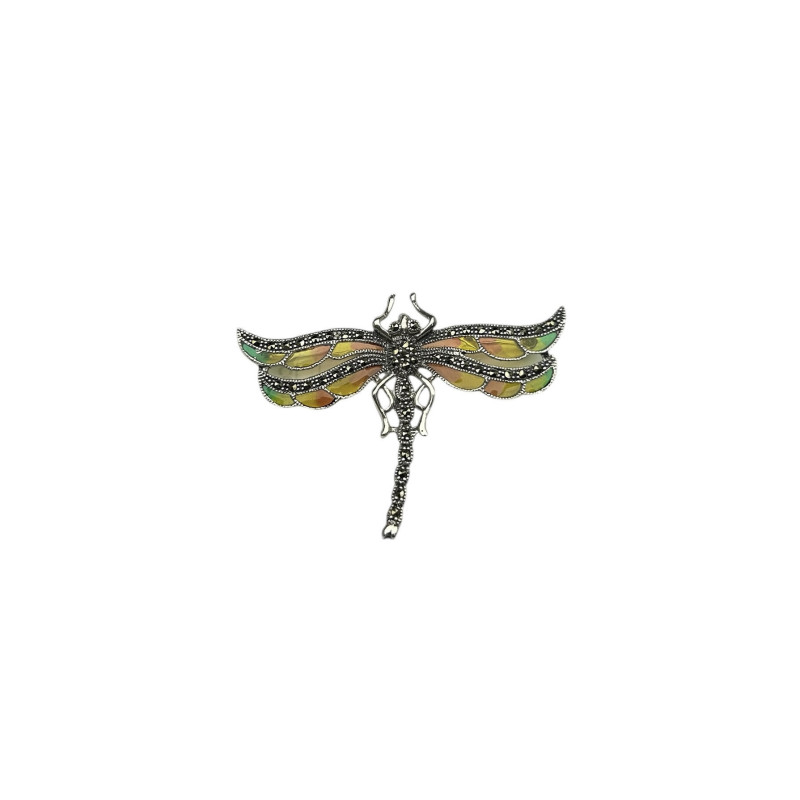 Libélula Plata 925 y Marquesitas y esmalte en tonos verdes, amarillos y rosas.