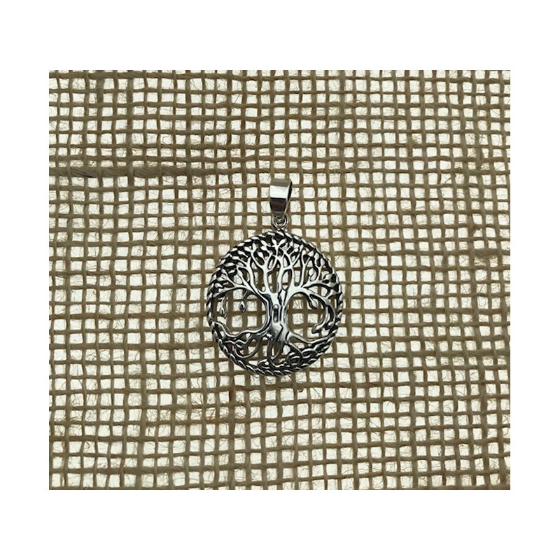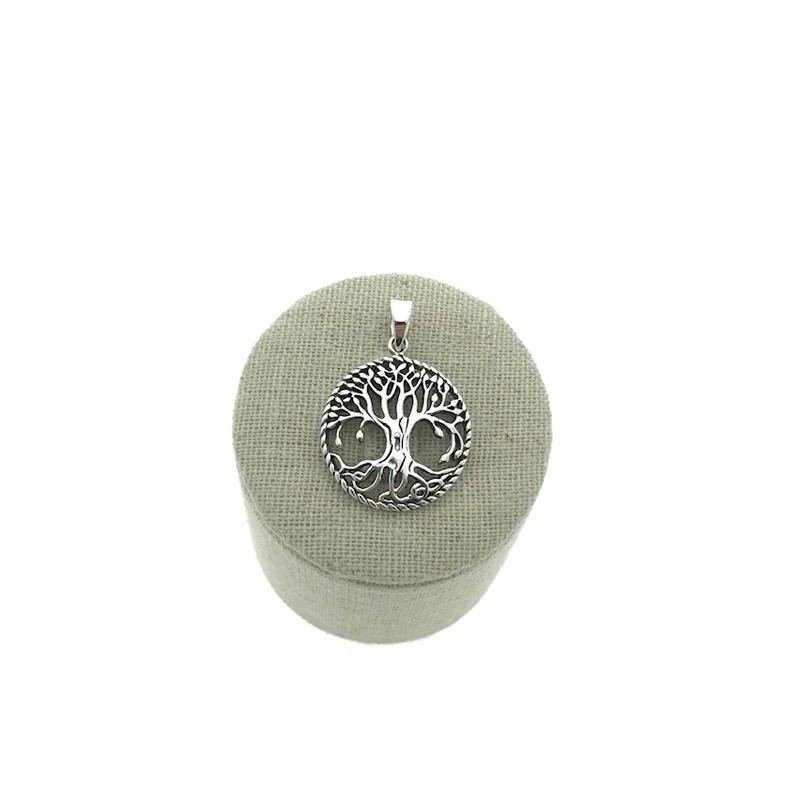 • Colgante árbol de la vida en plata 925 cuyo diámetro aproximado es 24 mm.