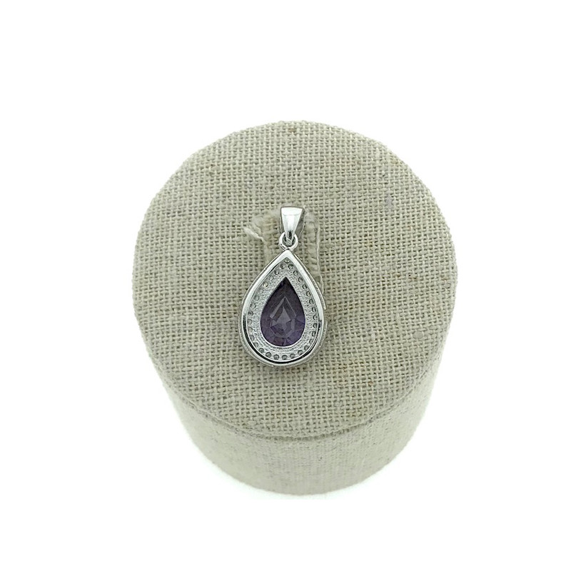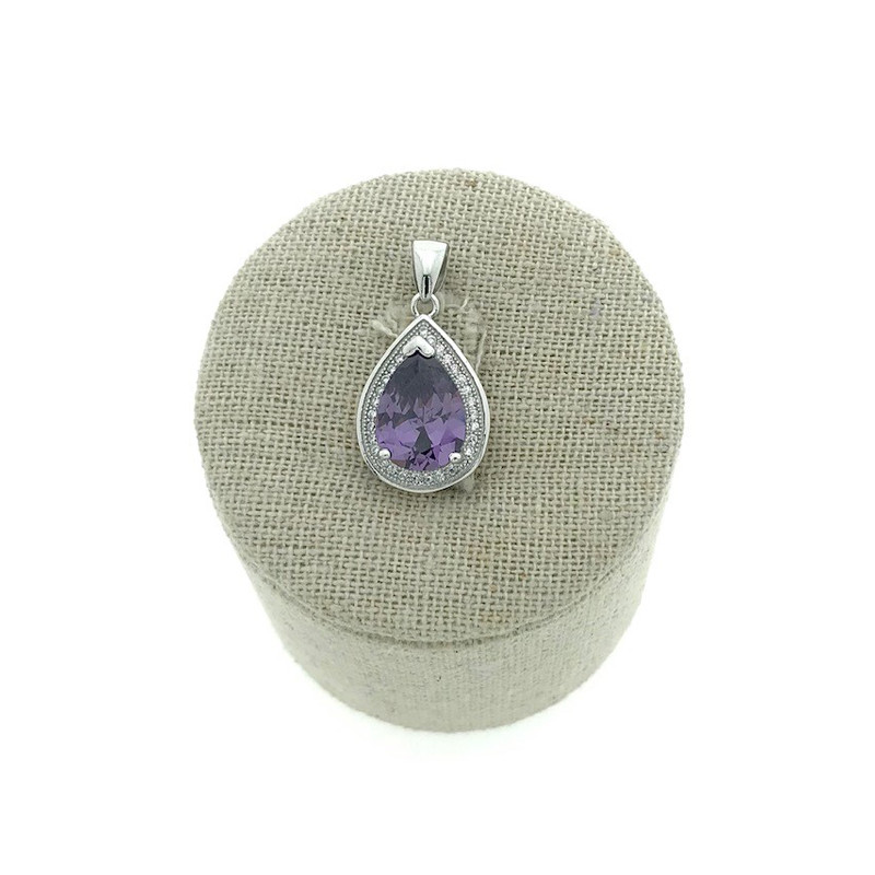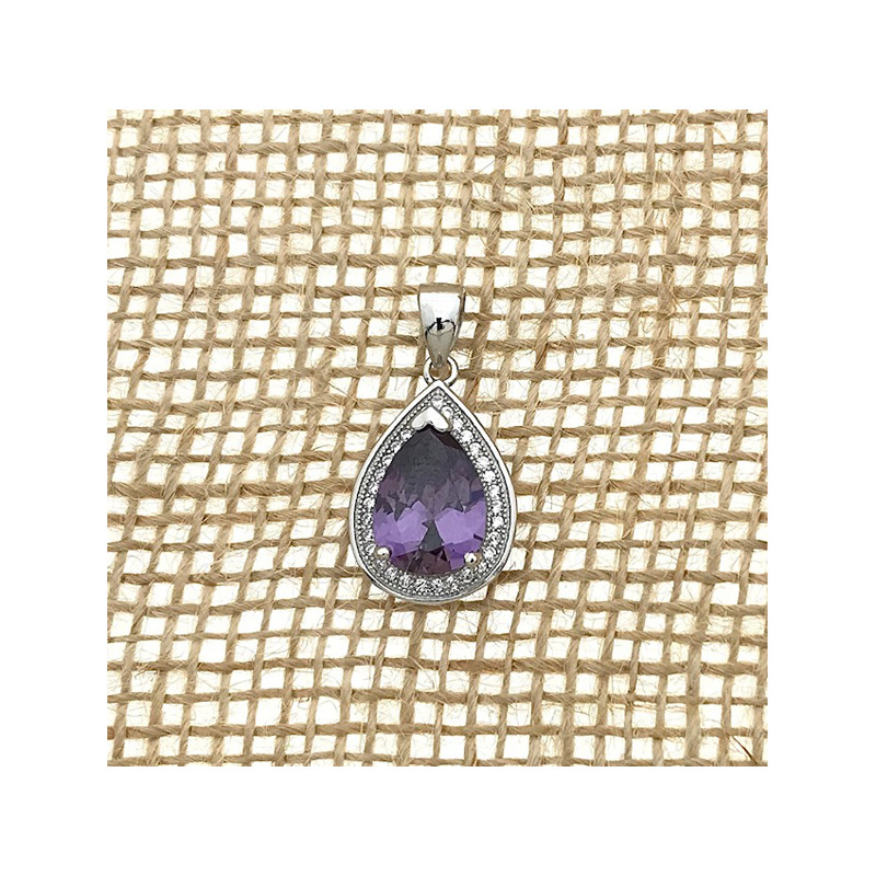 • Colgante en plata 925 con una circonita amatista rodeada de pequeñas circonitas de color blanco.