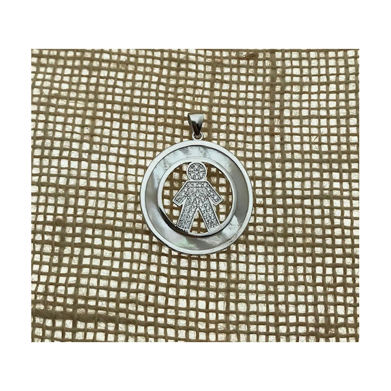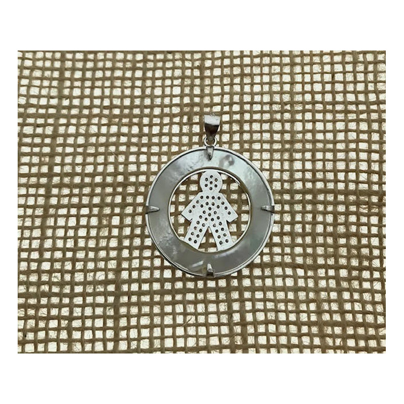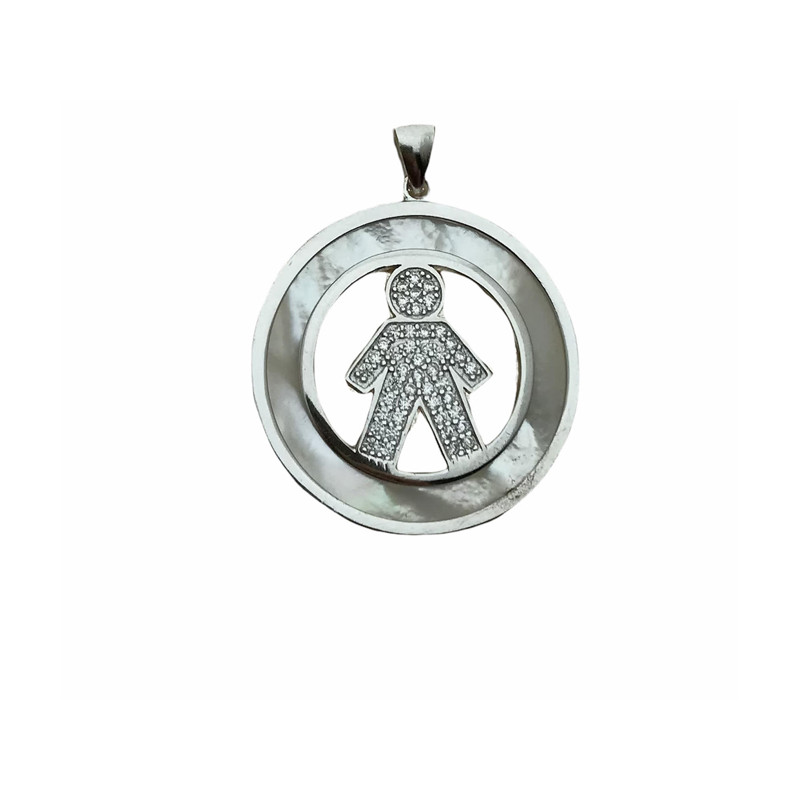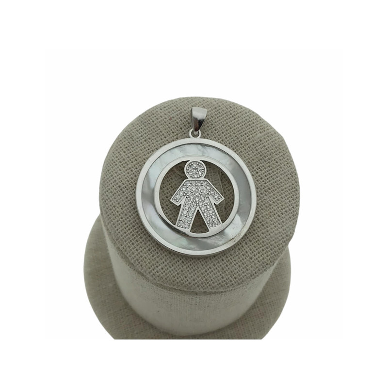 • Colgante niño en plata 925 con circonitas y nacar.