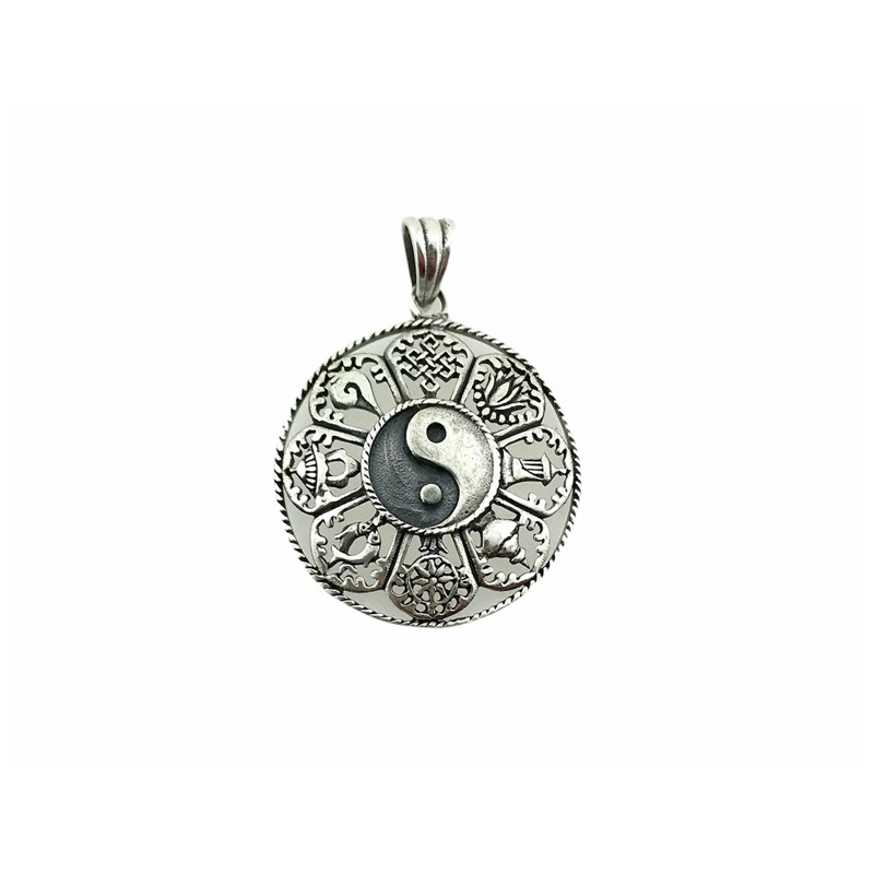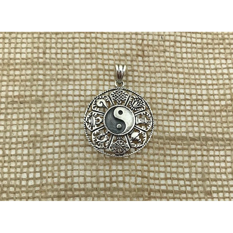 • Colgante Yin Yang Feng Shui con símbolos de la suerte en Plata 1ª Ley 925mm