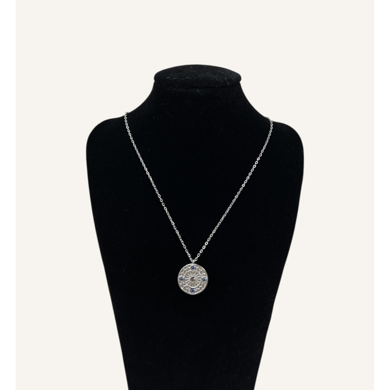 • Gargantilla en plata 925 con forma de círculos y cuatro circonitas de color azul.