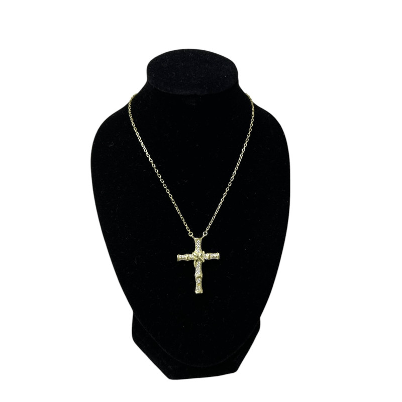 • Gargantilla cruz con circonitas en plata 925 dorada.