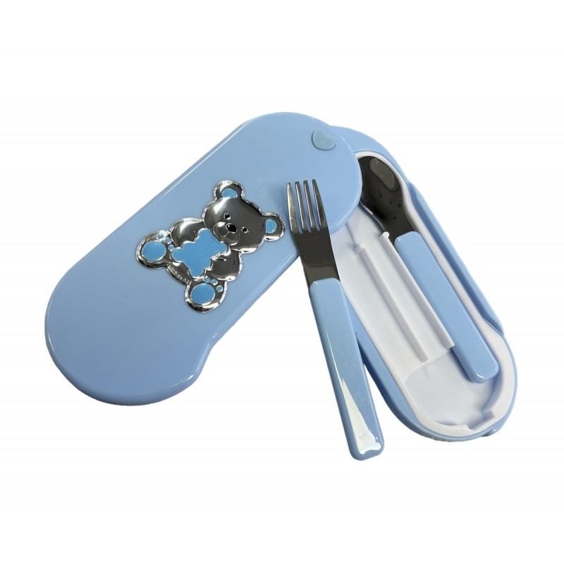 • Cubiertos de merienda en plata 925 con dibujo de un osito.