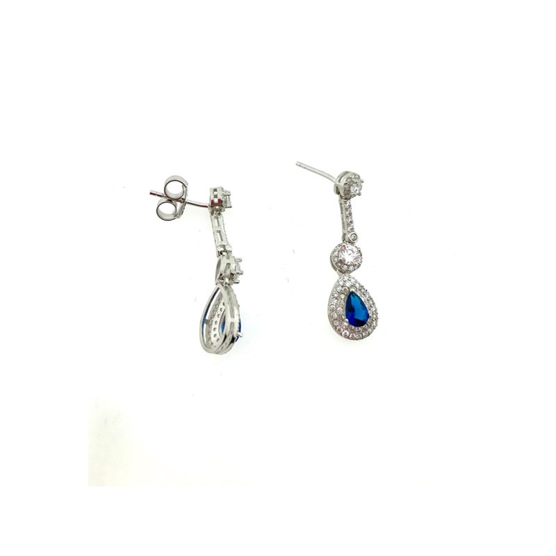 • Pendientes circonitas blancas y azul , montadas en Plata 925