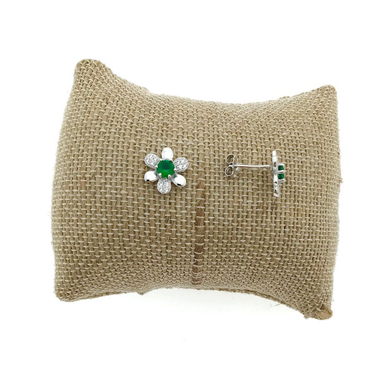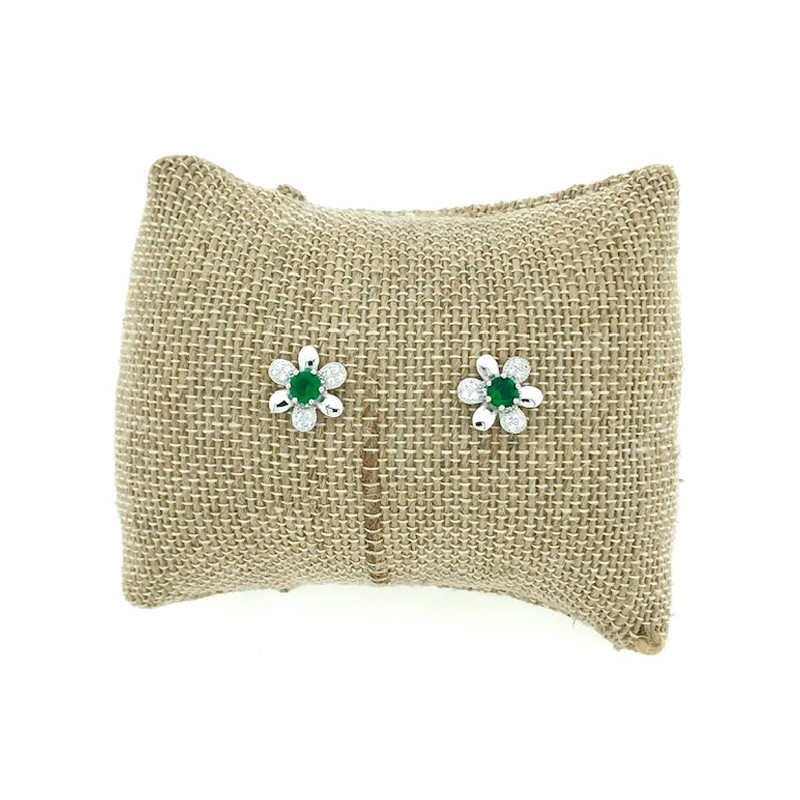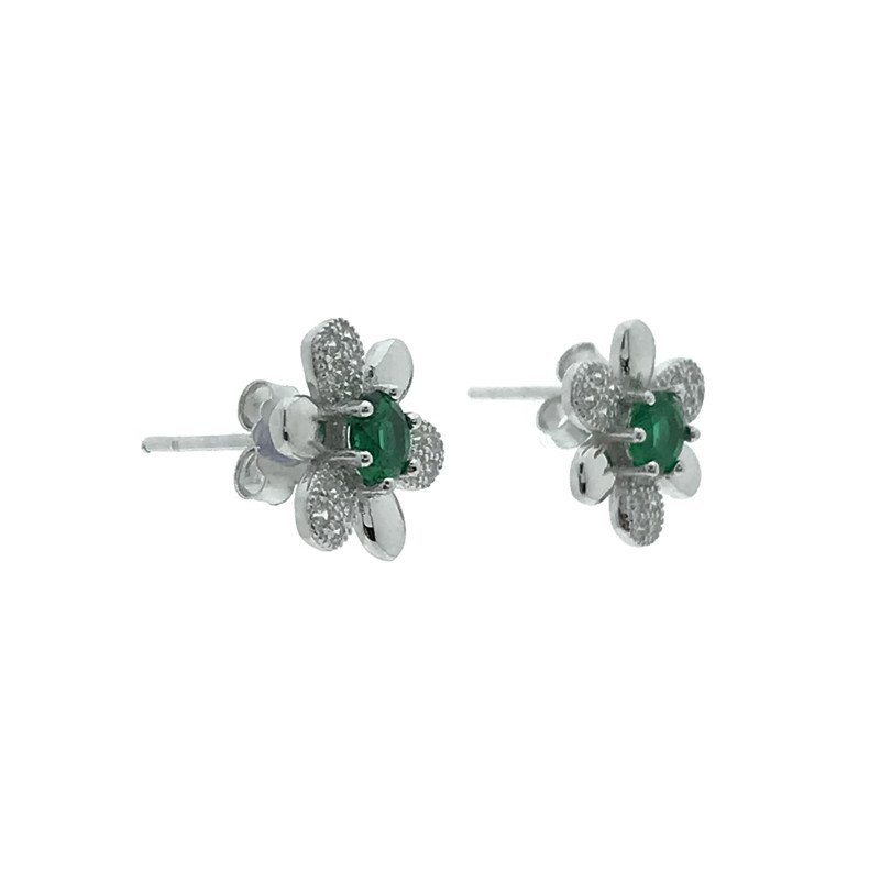 • Pendiente en plata 925 con forma de margarita con circonitas blancas y en el medio una verde.