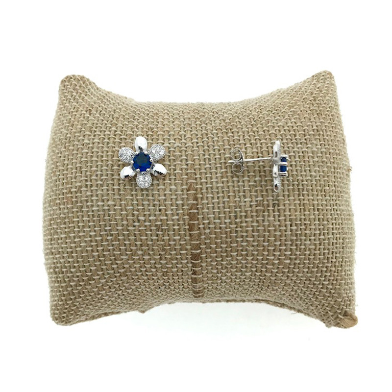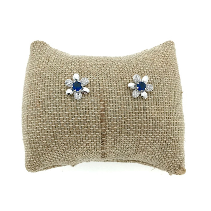 • Pendiente en plata 925 con forma de margarita con circonitas blancas y en el medio una azul.