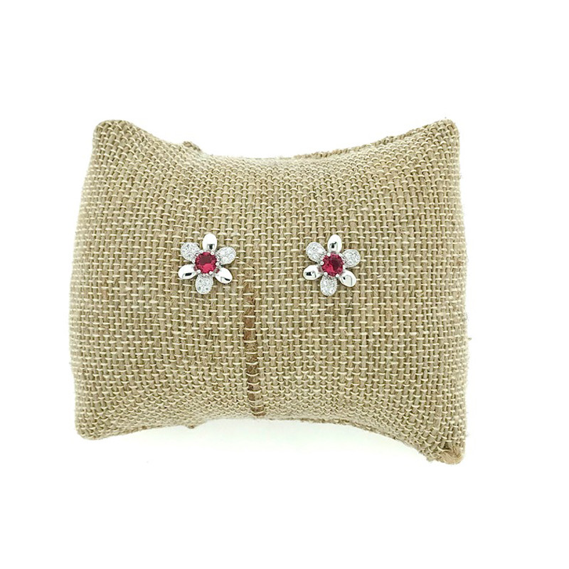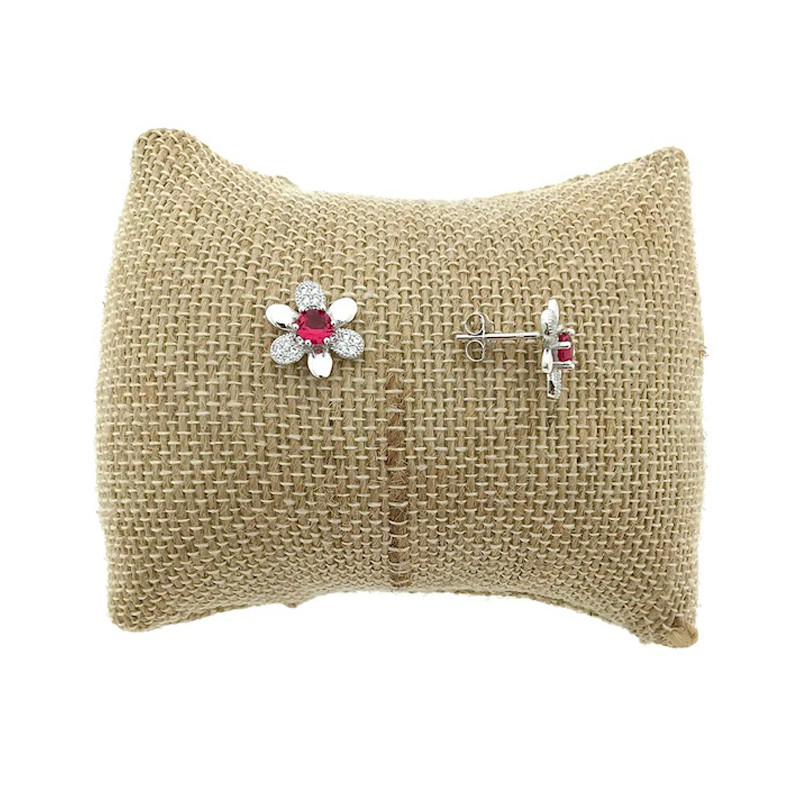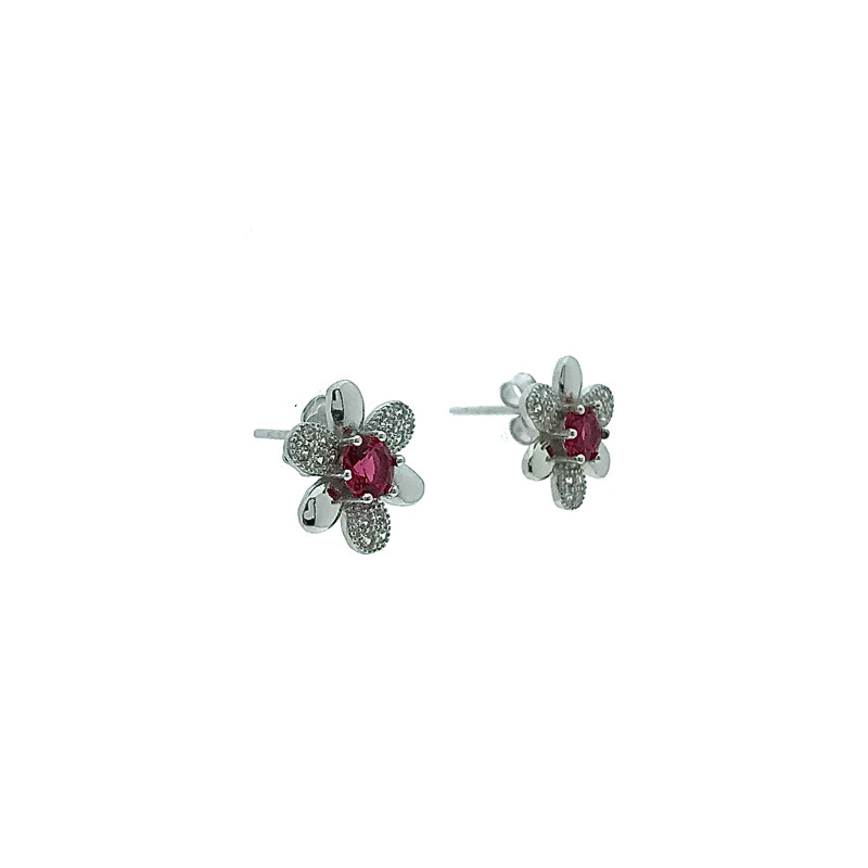 • Pendiente en plata 925 con forma de margarita con circonitas blancas y en el medio una verde.