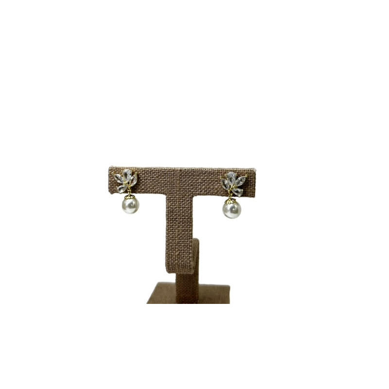 • Pendiente con circonitas y perla en Plata 925 dorada.