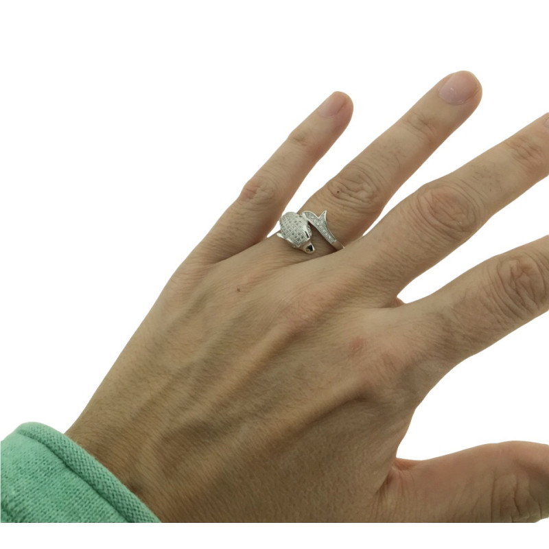 • Sortija plata 925 y circonitas blancas en forma de delfin.