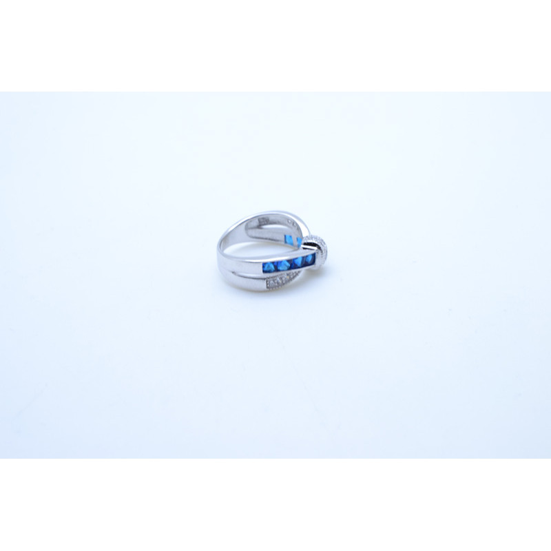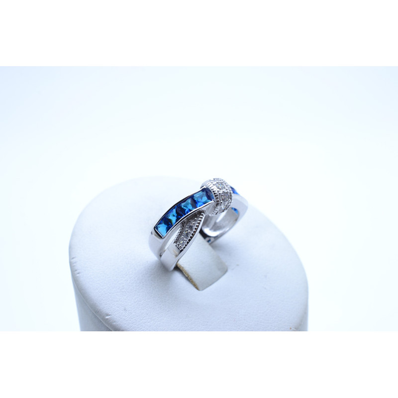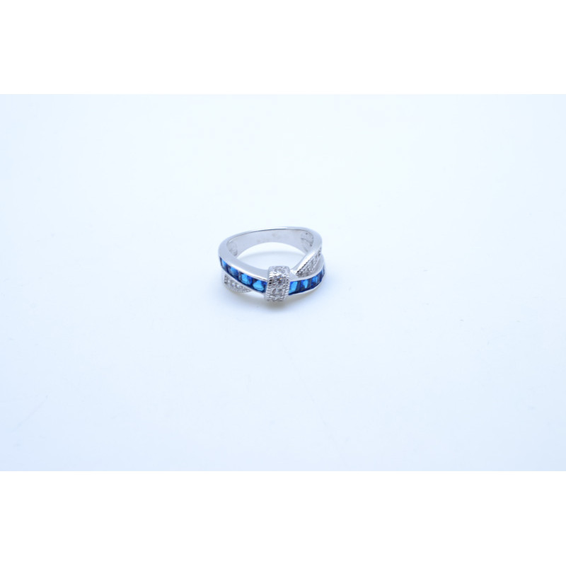 • Sortija plata 925 cruzada con circonitas amatistas y blancas.