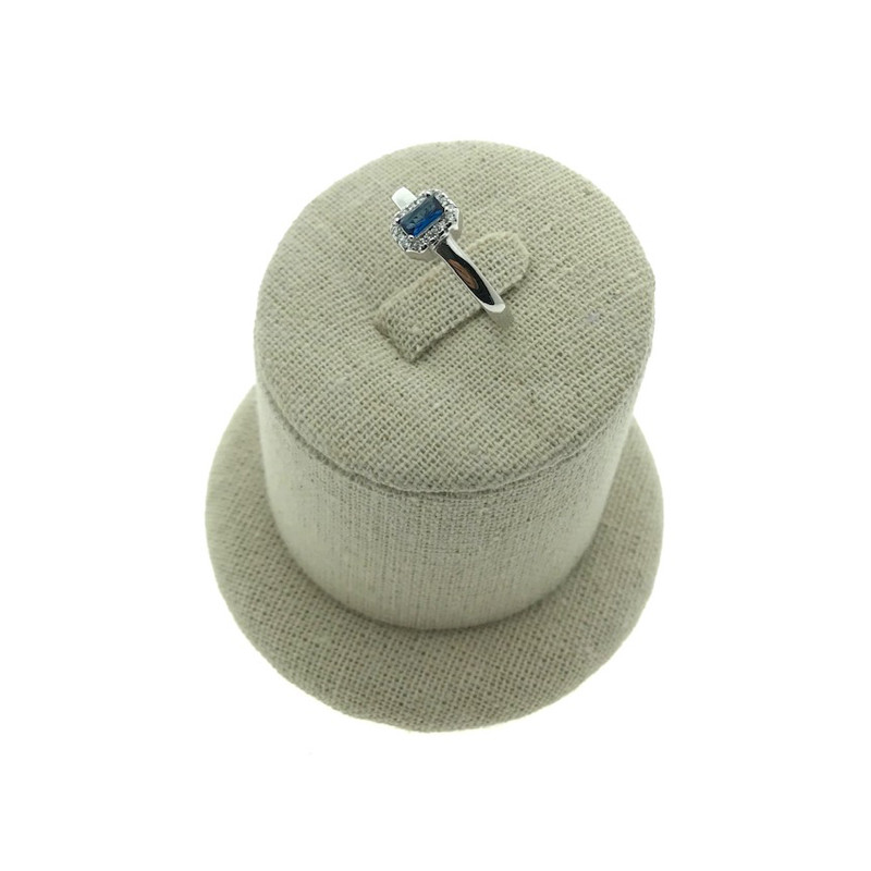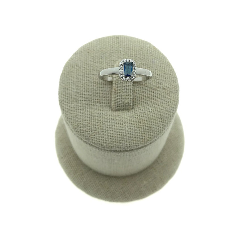 • Sortija con circonita rectangular azul rodeada de circonitas blancas en plata 925.