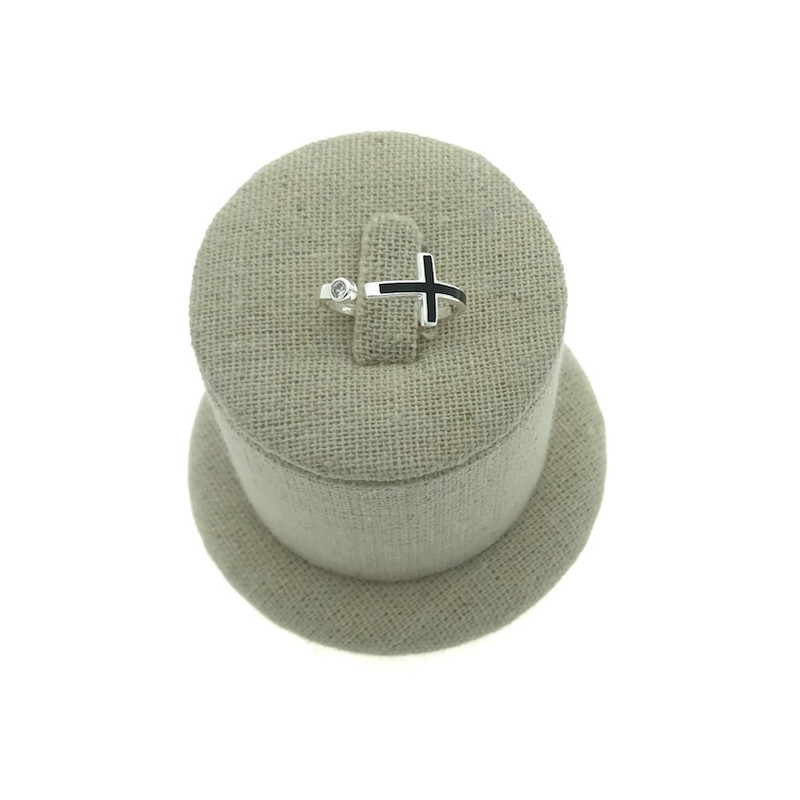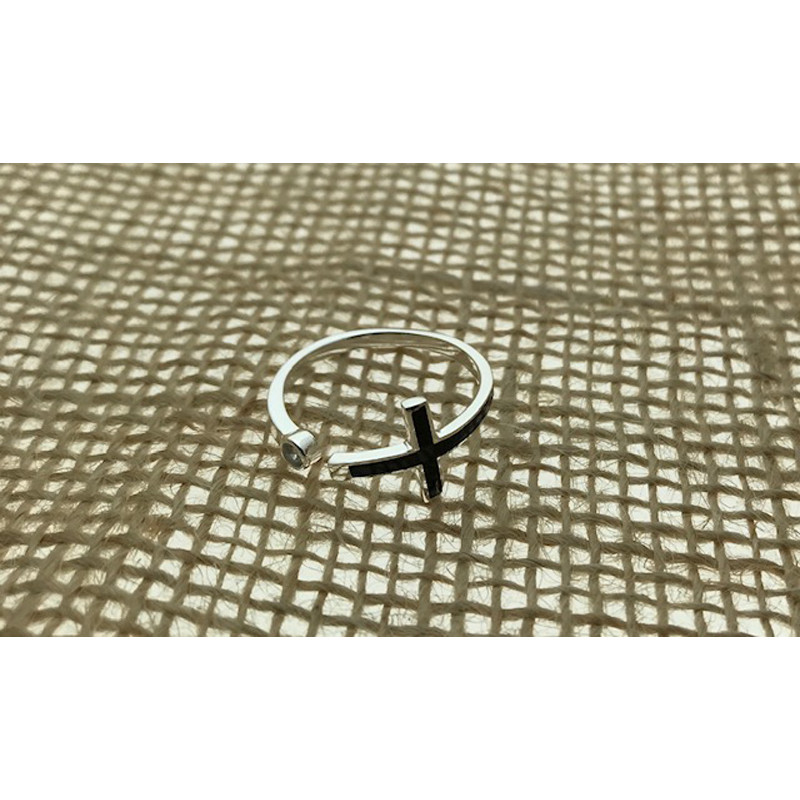 • Sortija formada por una cruz, con esmalte en negro, y una pequeña circonita en plata 925.