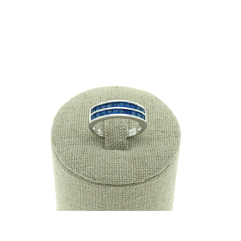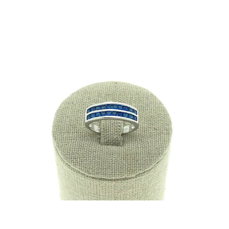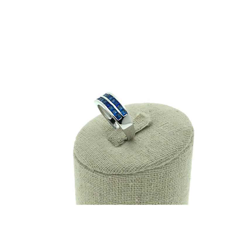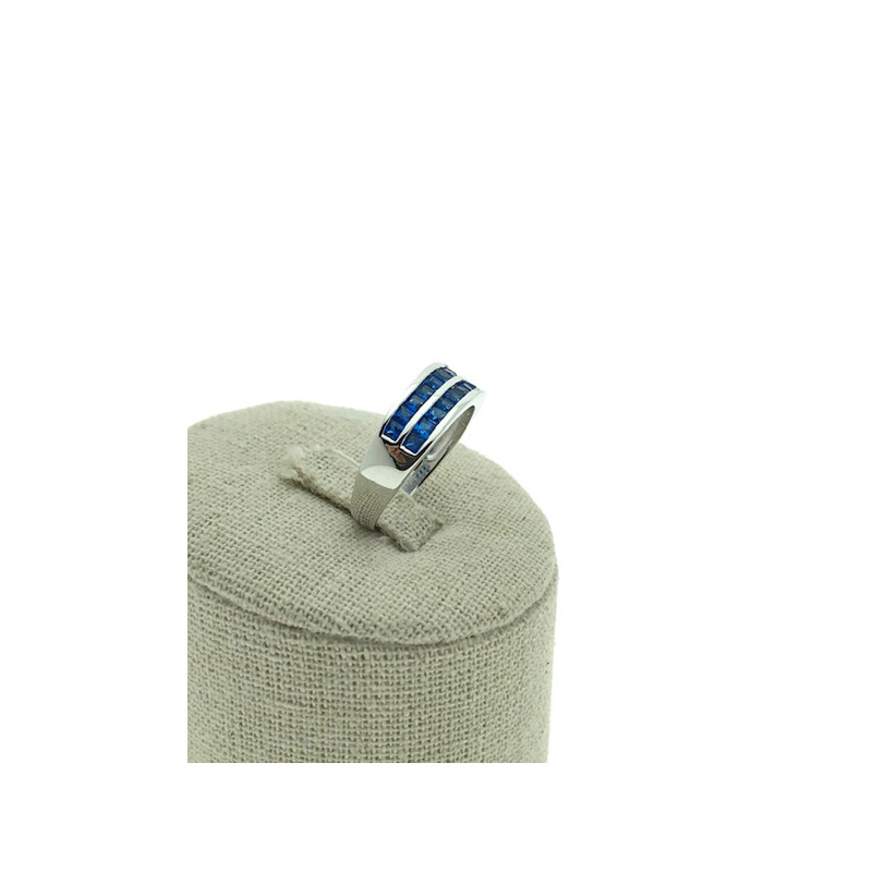 • Sortija en plata 925 con dos filas de circonitas en color azul oscuro.