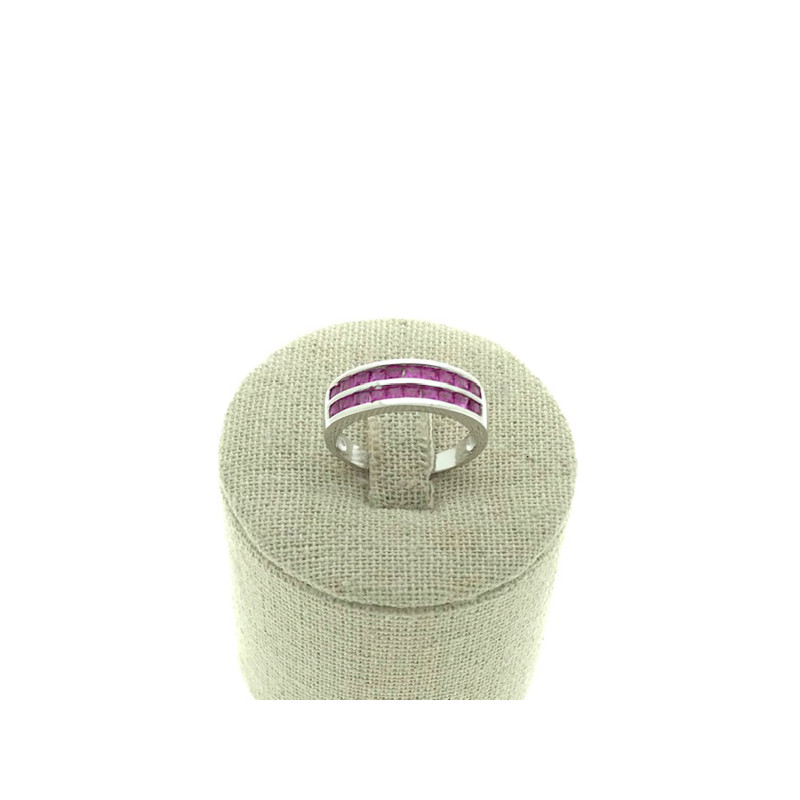 • Sortija en plata 925 con dos filas de circonitas en color azul rosa.