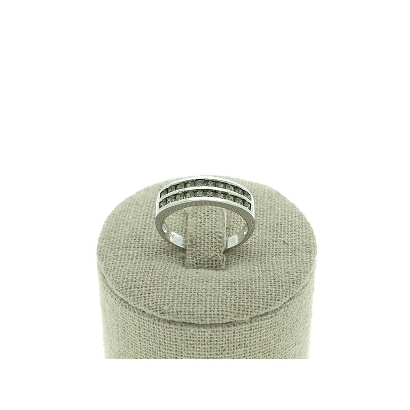 • Sortija en plata 925 con dos filas de circonitas en color azul verde oliva.