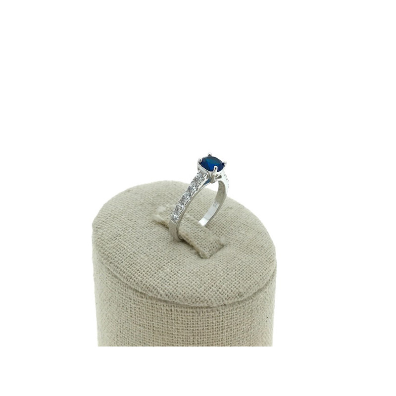 • Sortija en plata 925 con una circonita azul rodeada de circonitas blancas.