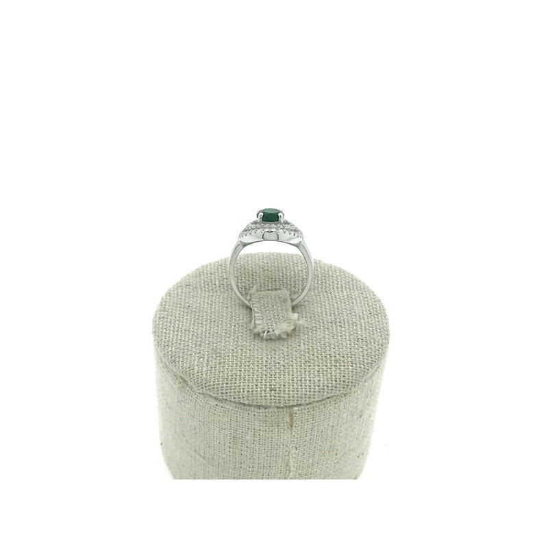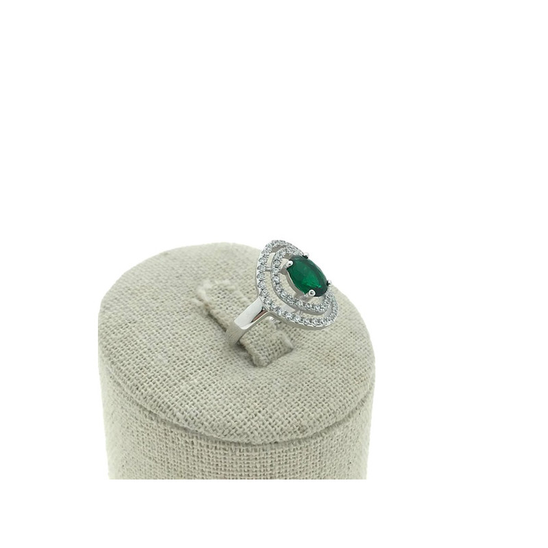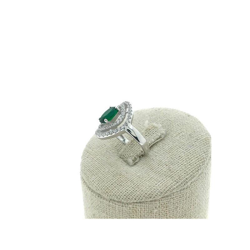 • Sortija en plata 925 con circonita verde rodeada de circonitas más pequeñas blancas.