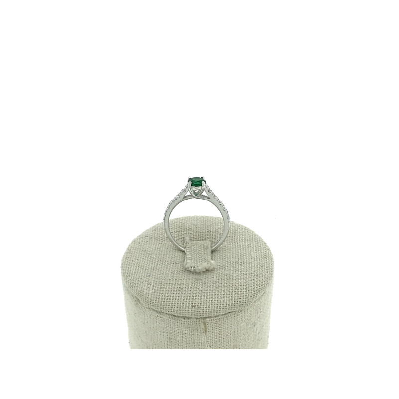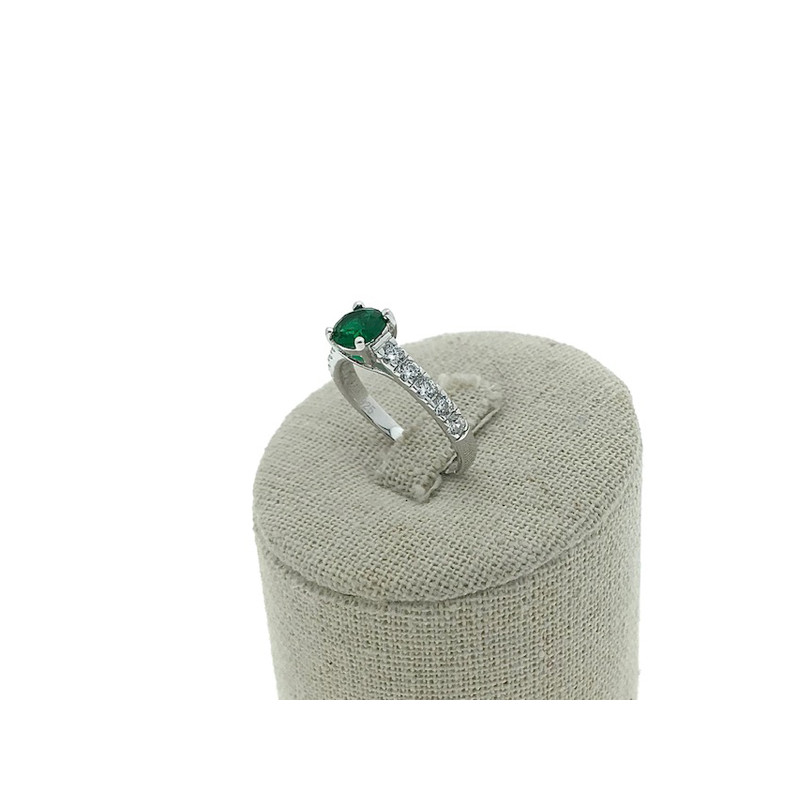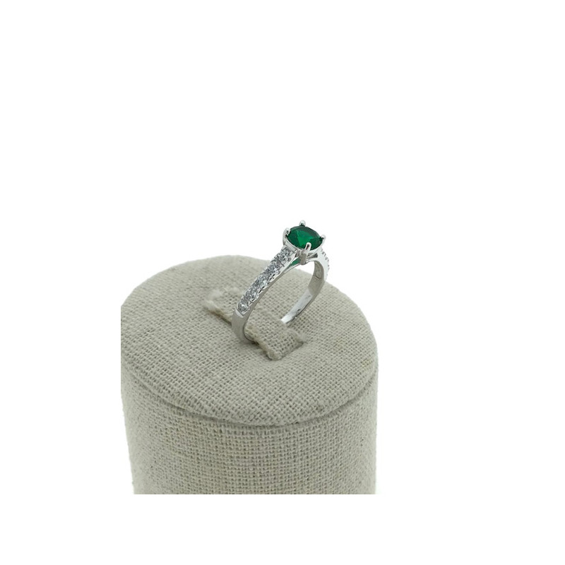 • Sortija en plata 925 con una circonita verde rodeada de circonitas blancas.