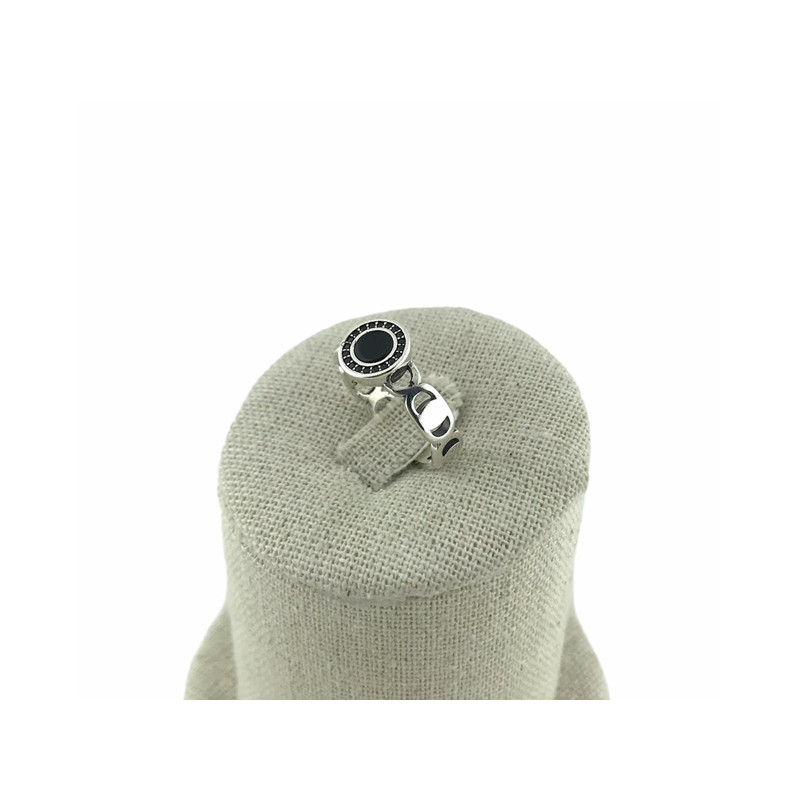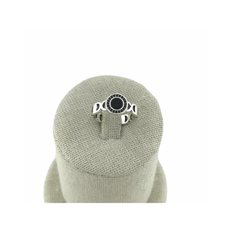 • Sortija plata 925 con circonitas negras y una piedra negra central.