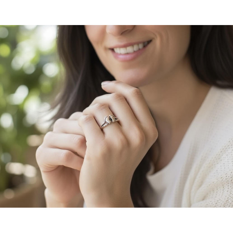 • Sortija con dos pies de bebe en plata 925