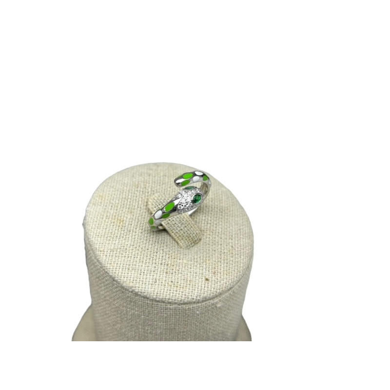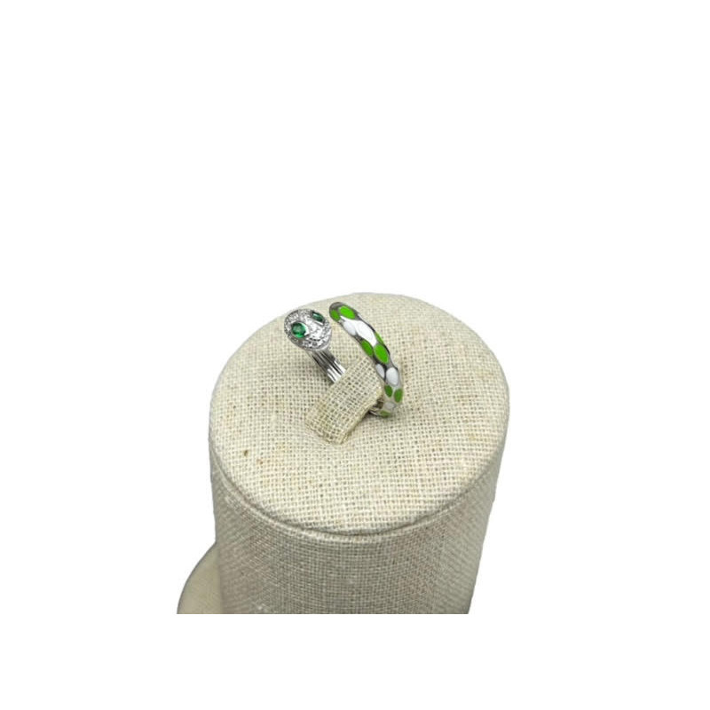 • Sortija con esmalte verde, circonitas de color blanco en la cabeza, en plata 925.