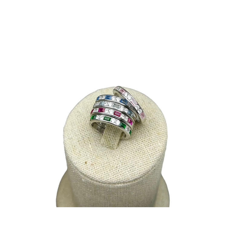 Sortija con circonitas de colores combinadas con circonitas blancas y plata 925.
